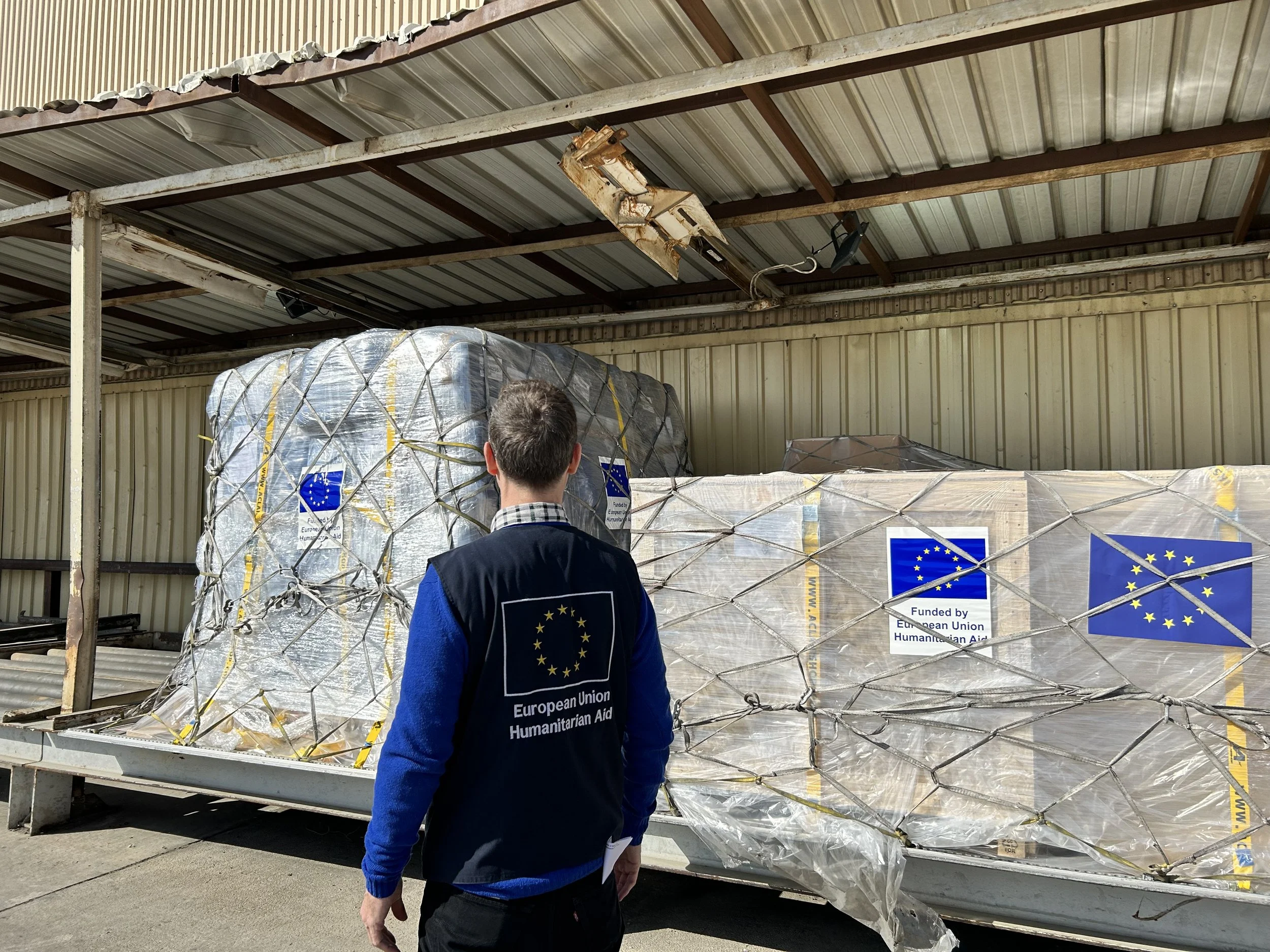 An EU humanitarian worker inspects vital cargo in Jordan. The organization has a history of increasing their provision of foreign aid to meet the needs of the most vulnerable.