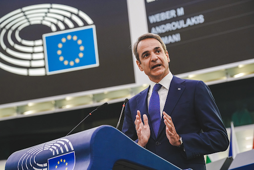 Greek Prime Minister Kyriakos Mitsotakis gives a speech at the European Parliament