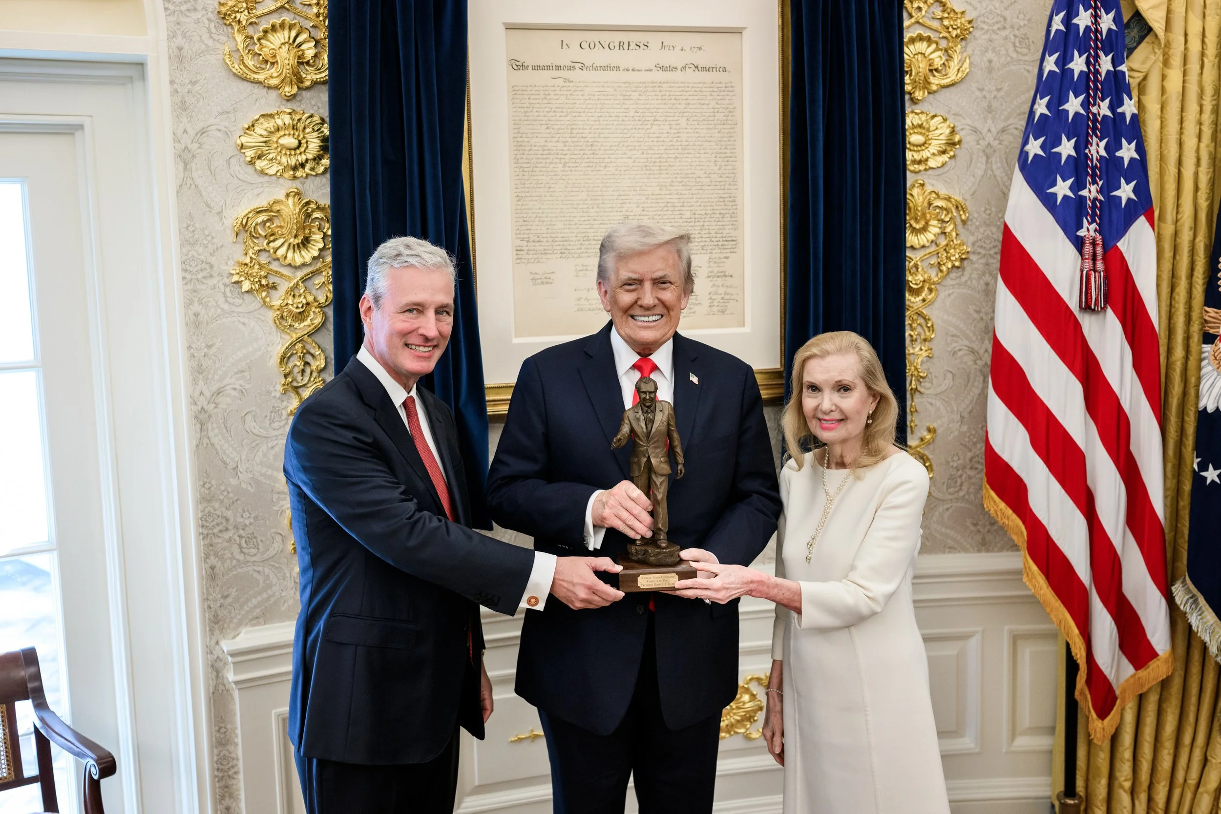 Trump being presented the Richard Nixon Architect of Peace Reward by Foundation Board Chairman Robert C. O’Brien and Tricia Nixon Cox, October 21st, 2025. In an obscure attempt to normalize Trump, present day conservative politicians are emphasizing the similarities he shares with Nixon.